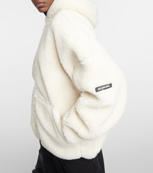 Crafted in Portugal from plush faux-shearling, the silhouette features a clean two-way zip closure, side slit pockets, and an elasticated waistband that shapes the oversized softness with subtle structure.
