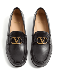 Elevate your style with the Valentino Garavani VLogo Signature loafers. With a sleek black design, flat sole, and almond toe, these loafers are both comfortable and stylish. The branded insole and 100% calf leather composition ensure high quality and long-lasting wear. Upgrade your shoe game today!