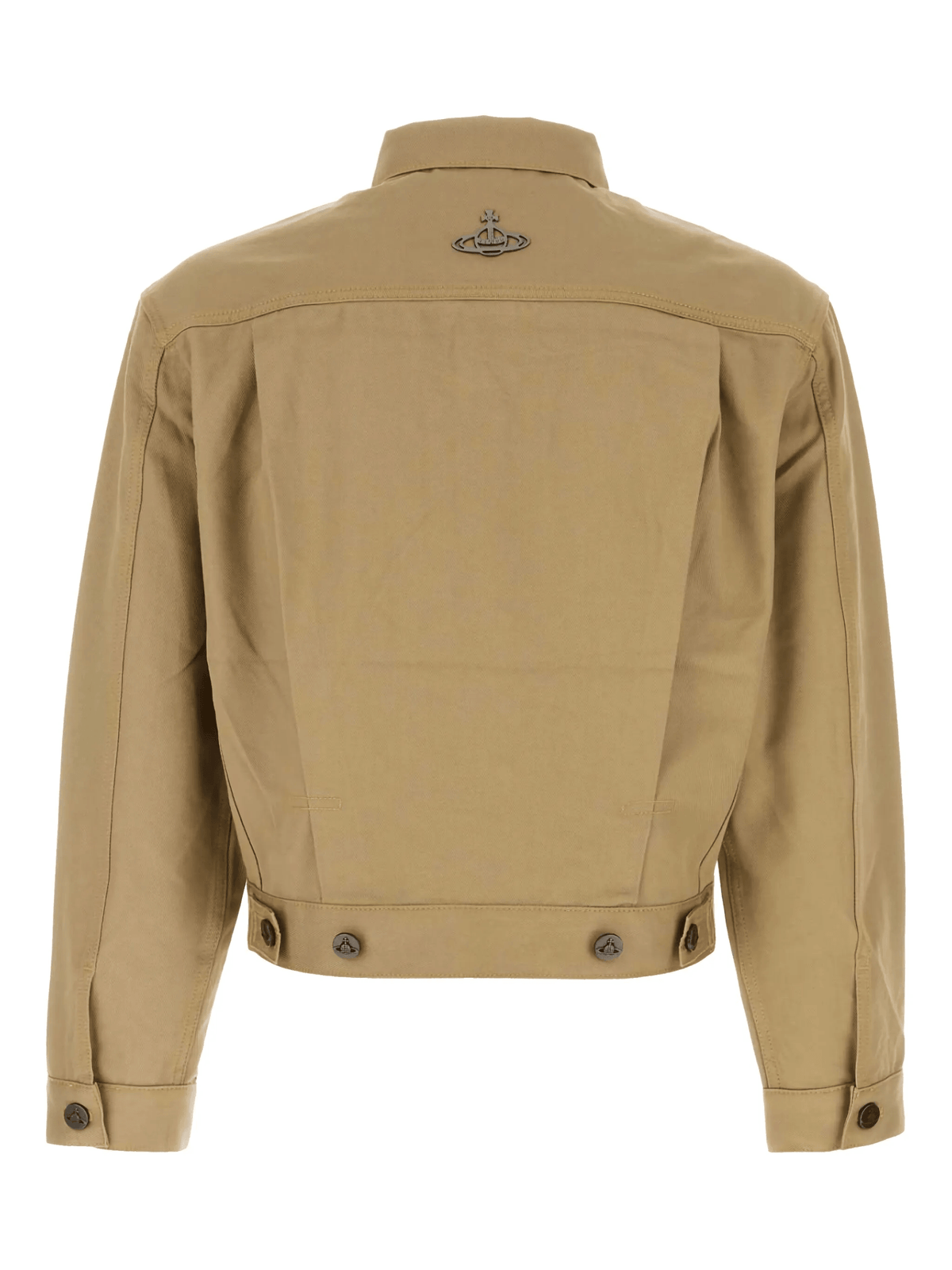 The Vivienne Westwood Marlene jacket in a chic camel brown is the perfect addition to your wardrobe. With a front button fastening and two button-fastening pockets, it combines style and functionality. The buttoned cuffs and signature Orb plaque detail add a touch of quirky charm. Made with 100% cotton, this jacket is both comfortable and fashionable.