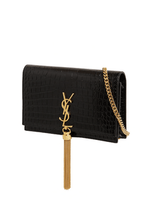 YSL Yves SAINT LAURENT KATE CROC EMBOSSED LEATHER CHAIN WALLET